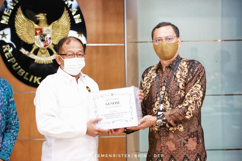 Jakarta-Sebagai upaya terus mendukung hilirisasi dan ajang promosi hasil riset dan inovasi anak bangsa, Kementerian Riset dan Teknologi/Badan Riset dan Inovasi (Kemenristek/BRIN) dalam hal ini diwakili Sekretaris Kemenristek/Sekretaris Utama BRIN Mego Pinandito menyerahkan satu unit alat skrining Covid-19 yaitu GeNose C19 kepada Kementerian Koordinator Bidang Politik, Hukum, dan Keamanan (Kemenko Polhukam) yang diwakili Sesmenko Polhukam Letjen TNI Tri Soewandono bertempat di Kantor Kemenko Polhukam, Medan Merdeka Barat, Rabu, (10/03).